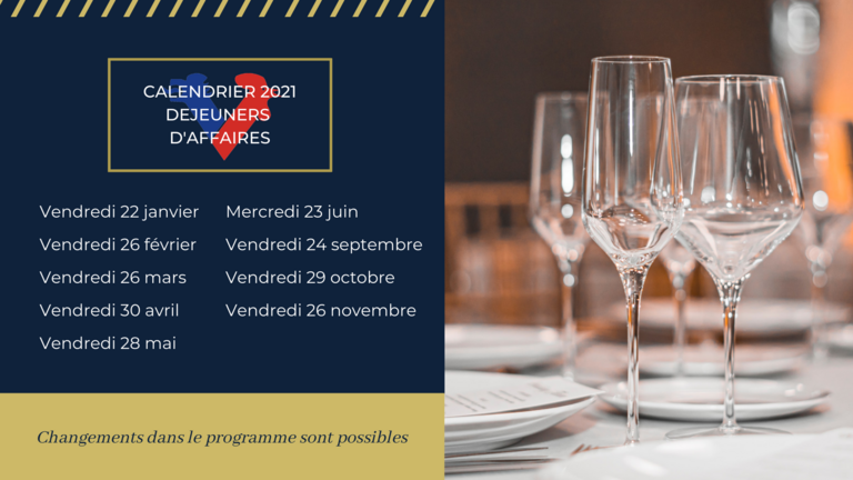 Calendrier prévisionnel : Déjeuners d'affaires 2021