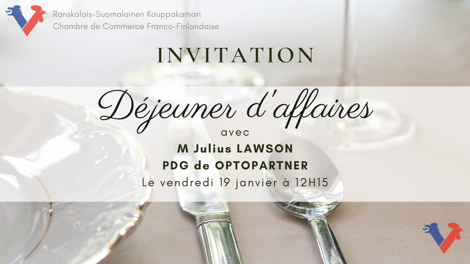 La Chambre de Commerce Franco-Finlandaise à Paris a le grand plaisir de vous inviter à notre prochain déjeuner d'affaires mensuel qui aura lieu